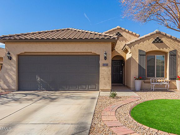 Welcome to 4830 S Genoble, a beautiful single level located on a quiet internal street. Low maintenance curb appeal gives you your first impression of what's to come prior to entering this 4 bedroom home. Tile floor extends through out the main living areas, hallways and bathrooms with soft carpet in the bedrooms. 9ft tall ceilings, stylish neutral paint and crown molding are small details that set this one apart. The first bedroom is tucked away in the front of the home and currently being used as a home office. The kitchen has stainless steel appliances with an electric range oven but is pre stubbed out already for gas should you prefer that option. Ample counter top space, a pantry and breakfast bar separate the kitchen from the open plan living area. The tranquil back yard is accessible from either the kitchen or master bedroom and has an extended paved patio to enjoy your morning coffee while taking in the beautiful Arizona weather. The patio also has a gas stub out for an outside BBQ option and is also pre wired for the possibility of a hot tub. The Master suite has ample space plus a double sink vanity, separate shower and soaking tub and a surprisingly large walk in closet not found in every home. The garage has a long row of storage cabinets and a service door to the back yard. Close proximity to shopping, dining, top-rated schools, community "Bark Park", 202 freeway access, Phoenix-Mesa Gateway Airport and top rated schools. Don't miss this gem in a prime location near Elliot Road Technology Corridor.
