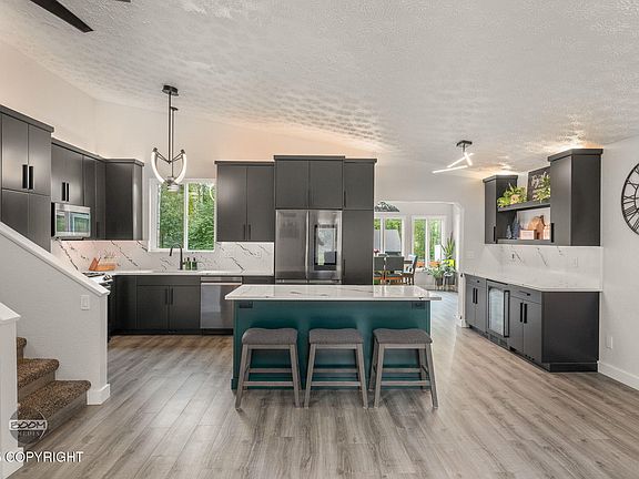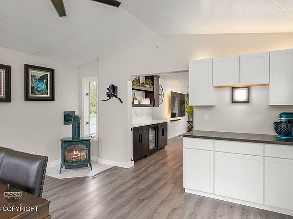 Fully reno modern home with custom 46'' cabinets, emerald-veined quartz counters, and sleek redesigned bath. Sunroom with southern exposure for dining, office, or playroom needs. Lush yard with 500sq ft deck, patio, and 40x60 back gravel pad, 100x40 front gravel plus garage parking. Updates include kitchen, baths, floors, interior/exterior paint, decks, and yard overhauls--move-in ready perfectionWelcome to this fully renovated modern home, ready for you to move in. The kitchen boasts 46" solid wood cabinets built by Alaska Custom Cabinets, a spacious island topped with striking emerald-veined quartz, and modern finishes throughout. The bright sunroom, with its southern exposure and walls of windows, offers a flexible space perfect as a dining area, playroom, office, family room, or plant haven. The bathroom was completely taken to the studs and rebuilt with a sleek contemporary style, including a solid wood vanity. Both the front and back yards are lush and beautifully maintained. The backyard is an entertainer's dream with a 500 sq ft deck, large paver patio, and a massive 40x60 gravel pad offering exceptional space (in addition to the 40'x100' in the front yard). Parking is abundant enough for 8 trailers to be parked on the gravel pads, plus garage access would still be accessible. The back yard is fully fenced in by a 6' cedar fence, while the front offer an 8' cedar fence for added privacy. Shed (17'x13') with 2 lofts stays, along with the massive amount of split and cut wood for the fire pit. Renovations include new kitchen ($50k), bathrooms ($10k), flooring ($10k), paint inside and out, expanded Trex deck ($15k), cedar fencing ($18k) and extensive yard upgrades truly a move-in-ready modern gem.
