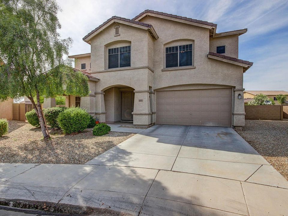 Gorgeous Rogers Ranch Home with all the right upgrades! Huge Lot, oasis back yard with extended patio, pool, Ramada, above ground spa (Conveys) and raised garden beds! Kitchen has granite counters, Cherry stained cabinets, island/breakfast bar and upgraded stainless steel appliances! Tile in all the right places! Surround sound with speakers that convey in family room! Large Master Suite with separate tub and shower and walk in closet! Walk in closets in all but one bedroom! Built in cabinets and work bench in garage! Walking distance to B+ rated Rogers Ranch Elementary School, Huge parks, greenbelts and tons of walking trails! Close to shopping and 15 minutes to downtown Phoenix! Come and see this amazing property before it''s too late! Bring your pickiest clients and a contract!!