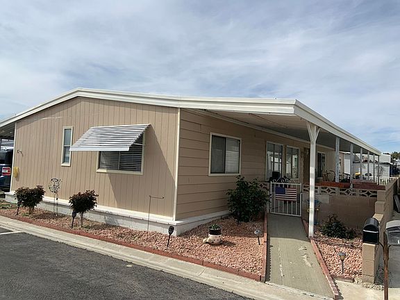 This property is the best in the park, it's located in the back of the park for privacy, on a corner lot so that you have easy access and lots of curb appeal. The driveway has tandem parking as well as side by side. The exterior has a cute fresh look to it. There is a very large storage shed and a fenced landscaped yard. The interior is very spacious and offers a split floor plan, there's a dining room with a wall to wall hutch, newly remodeled kitchen, formal dining room and newer flooring throughout the living space. Most area's in this home have wheel chair access. All of this can be yours, just make an appointment and see for yourself.