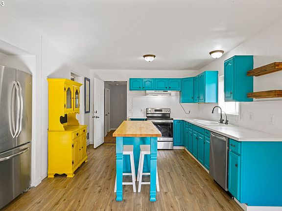 Nestled a block away from the heart of downtown Oakridge, this recently updated two-story home exudes a comfortable, laid-back charm. With mostly vinyl flooring complemented by soft carpets in 2 of the bedrooms, this cozy abode boasts a spacious kitchen featuring a suite of appliances, including a new free-standing refrigerator, new dishwasher, and new free standing range. Enjoy the scenic views of distant mountains and lush trees from the property, and unwind in the front yard with the apple trees, roses, and other greenery. The residence features a new heat pump/wall unit AC meant for climate control as well as a covered carport for convenient parking. With recent upgrades including a an updated water heater, new lower cabinets, new solid surface countertops, fresh paint within the last year, and updated vinyl plank flooring, this residence promises a hassle-free living experience. This home also features an unfinished attic that the previous owner used as a storage/shop area. Its a short walk away from downtown, the library, and the local schools. This inviting home offers a perfect blend of modern comfort and casual Oregon living, all on a corner lot of just under 5000 sqft. This would be a great investment or starter home opportunity. Enjoy everything Oakrdige has to offer! Oakridge is known as the mountain biking capital of the northwest and boasts miles of trails. Surrounded by the Willamette National Forest, there are also an abundance of hiking trails and other outdoor activities to enjoy! Come make Oakridge home!