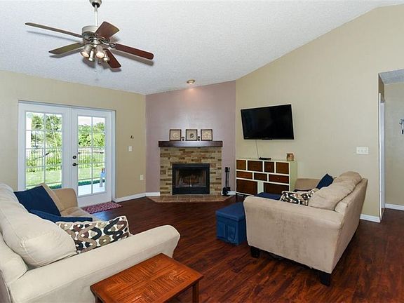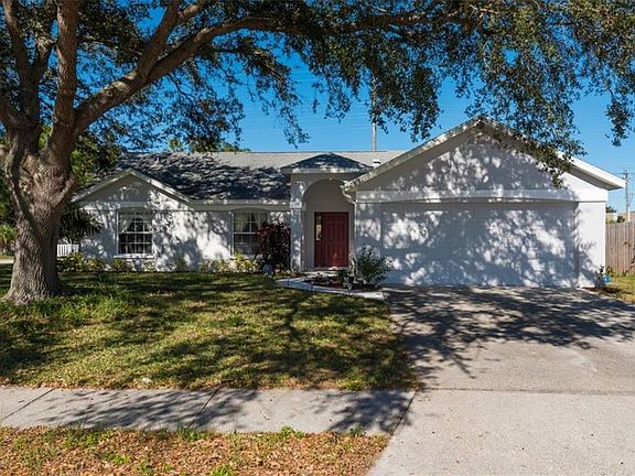 A winding road along a shimmering lake guides you to this lovely home on an oversized corner lot. A welcome path leads you to the arched front entrance with a freshly painted exterior. Enter the foyer and be wowed by the spacious great room with custom brick fireplace, wood laminate floors and vaulted ceilings. The kitchen is updated with wood cabinetry, granite counter tops and a nice sized pantry. Other features include plant shelving throughout, an eat in kitchen and a newer water heater. The split floor plan allows for privacy when its time to retreat to your large master bedroom complete with a generous walk in closet. The oversized garage has a laundry nook separate from the parking area. Step outside to view the decorative wrought iron fence surrounding the large patio and play area. Braden River Lakes offers a newly updated community pool, tennis courts and friendly recreational area with very low HOA fees. Place this home at the top of your list to see!