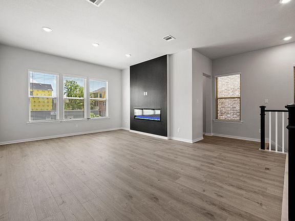 This brand new three story single family home is located in a gated community, which includes a pool. It has three spacious bedrooms, with two full bathrooms, two half bathrooms, and an office that features an elegant accent wall. Relax beside the cozy electric fireplace in the open-concept living space leading into a gorgeous kitchen with gleaming white cabinets, a gas stove, and a massive pantry. Enjoy the convenience of city life which includes restaurants, shopping centers, entertainment, and more only seven minutes away while residing in a quiet neighborhood.