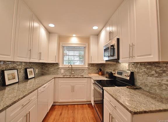 Stunning 3 bed, 2 bath brick ranch home in Madison Park. Gorgeous hardwd floors & fresh paint throughout! Den opens to newly remodeled kitchen complete w/modern tile backsplash, granite, SS appliances & Kitchen Maid soft close cabinets/drawers. Spacious bedrms w/ample closet space. Renovated bathrooms w/tile & new vanities. Partially fenced backyard, covered patio for outdoor entertaining. New HVAC unit, new gutters & vinyl windows. Minutes to Park Rd, Montford entertainment, Southpark & Uptown