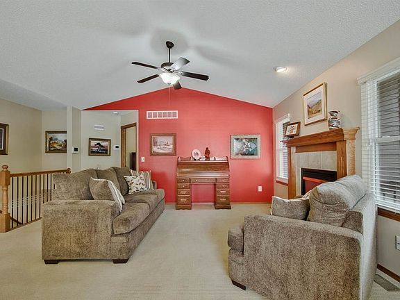 This stunning Bel Aire 3 bedroom, 3 bath home on a quiet cul-de-sac is a must see! This home has plenty to offer, and lots of space. The home has concrete siding with brick accents and a 2 car attached garage with opener. Enjoy the vaulted ceilings and oak trim throughout the house, the hard wood and wood laminate floors, ceiling fans, beautiful lighting fixtures, and neutral color palate. A separate sun room provides lots of natural light. Relax by the living room fireplace, cook something up in the beautiful kitchen with island and quartz countertops, or entertain downstairs in the basement family room with view out windows. The basement provides an additional bedroom, full bath, and storage room with an additional finished room perfect for an office or exercise room. The master bath has a large walk in shower, adjacent to a walk in closet, and double vanity with onyx countertops. A sprinkler system helps keep the well maintained yard looking nice as you relax on your covered patio. This home is ready to sell and ready to see. HOA dues cover lawn and exterior maintenance as well as exterior painting on a regular schedule.