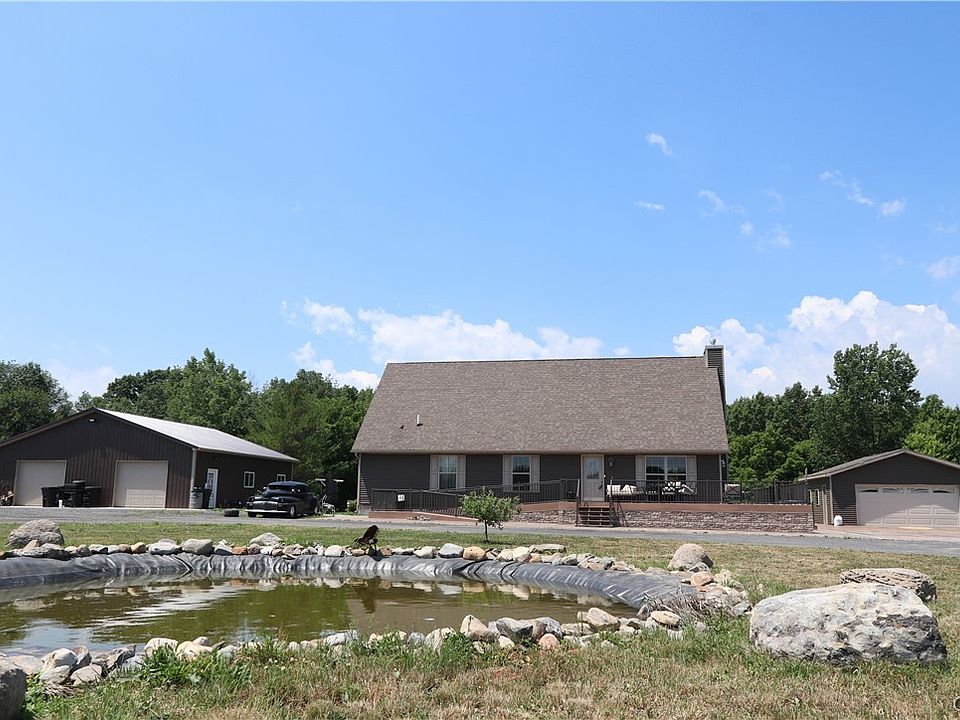 Here is COUNTRY LIVING in a newer contemporary home on a 3.2 acres. Built in 2017, this 3 BD, 2 BA home has vaulted ceilings, first floor laundry, an upstairs loft for an additional bedroom or office, an unfinished upstairs room/attic for storage, a large unfinished, full basement constructed of "Superior Walls" and the added bonus of public water. This property, together with the garage space (detached garage and a 40' x 40' pole barn with pellet stove), the expansive stampcrete patios/partial driveway, composite decking and composite fencing and the over-sized above-ground pool is just perfect for entertaining family, friends and welcomes many hobbies. This home also has ramp access and is wheelchair accessible. Minutes to the beautiful Finger Lakes of Cayuga Lake and Owasco Lake and an easy commute to Syracuse, Ithaca and Rochester. Come see this home today!