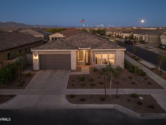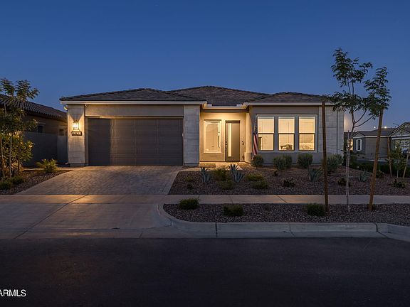 Welcome to your private retreat! This like new well-maintained home located in the desirable Eastmark Community. Amazing amenities with fishing lake walking/biking areas, disc golf, playgrounds and community events are offered in this planned community. Home is one level, with an open floor plan, 3 bedrooms, 2.5 bathrooms, bonus/flex room and den/office with abundance of natural light and double doors. Kitchen offers ample cabinets, quartz countertops, an oversized island, large walk-in pantry, gas stove, reverse osmosis, water softener and more!