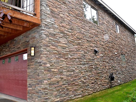 One of a kind home! Exterior is 99% ''cultured stone''. No maintenance. Interior is just as unique with beautiful stone fireplace, exotic mantel, custom new energy efficient windows and doors w/vaulted ceilings. Step out to the Trex wrap around deck. Huge master suite w/double closets. Nice tiled bathroom w/air jetted tub. New stainless appliances w/large pantry. Garage w/240 V power.
