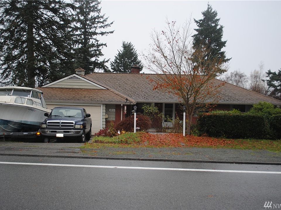 Views of both Mt. Rainier,Mt. Bkr & valley below,needs updating (price reflects it)however the bones are incredible.2 ceiling to flr gas fireplaces all brick,Formal dining room,has original wd kitchen & closet drs in excellent condition,Garage is fully walled with tongue & groove wood,Custom built in cupboards and plntr.Rms are good size,upstairs has mster,bedroom & full bathroom.Downstairs has 2 BR's and a possible large 3rd BR/office & full BTH,is plummed for water,large Lvgrm with fireplace.