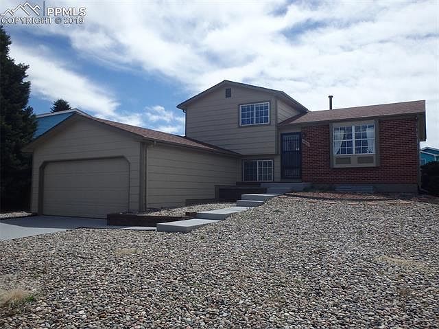 Beautiful views of Pikes Peak & mountains from deck & front yard. Cute tri-level with great zeriscape landscaping. Spacious master has California style master/hall bath & walk-in closet. 2nd upper level bedroom also has large walk-in closet. Inviting living room with bay window is adjacent to walk out dining area. Efficient galley kitchen with pantry/broom closet. Lower level family room has access to garage, 3rd bedroom with its 1/2 bath & unfinished basement. Laundry area in basement has a great window for brightness.
