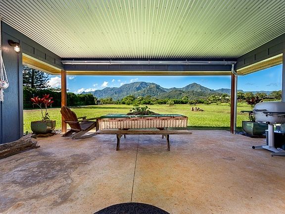 Located in one of the most desirable areas on the North Shore of Kauai you will find this simple, newly constructed and well built home. Set on nearly four acres along Kapaka Road, this property offers the privacy and space of a small agricultural neighborhood, yet you are only minutes removed from the world class surf and charm of Hanalei and the many amenities of Princeville. Magnificent mountain views of the Hanalei mountain range fill the main house, your outdoor living spaces and the sprawling grounds.Built in 2017, this property features a 4 bedroom, 3.5 bathroom main residence of 2,914 sqft plus 3 car garage - designed for elegant simplicity with modern stained concrete floors, exotic hardwoods and stainless steel appliances. A separate and detached 1 bedroom, 1 bathroom guest home/garage is the perfect place to host guests coming in to enjoy the natural beauty. Also featured is your very own backyard skate park. The large and spacious yard provides ample space for a small productive farm, already providing a wide variety of tropical produce.This property is ideal as a safe and quiet environment to raise a family or as a getaway island retreat. Come see for yourself.