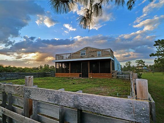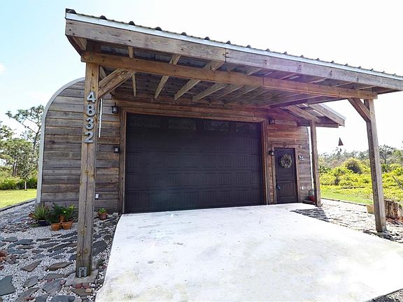 REDUCED PRICE!!! If you're a NATURE LOVER, who loves THE OUTDOORS, HUNTING & FISHING, then THIS IS YOUR OASIS! Lots of wildlife living on the property. You will not be disappointed! It sits on 4.96 acres w its own private pond. It's perfect for the 1ST TIME BUYER, anyone wanting to DOWNSIZE, or as a 2ND HOME. It features a big open floor plan of 3 beds/2 baths, loft with a claw foot tub, & even an outdoor shower! 2 car garage comes w commercial grade garage door & 2 car covered carport on a concrete slab. The garage is A/C controlled as well. It's not included in sq footage of the home & a great feature for extra living space. Kitchen & garage cabinetry are custom made w soft close drawers. This home incorporates modern materials & design features that make it so unique & comfortable. Kitchen boasts a lovely farmhouse sink, stainless steel appliances, & granite counter tops. There are high ceilings & sliding Cypress barn doors to each bedroom. Bamboo & tile flooring throughout home. Home is a 30 x 60 American Steel Span A Model Home w an engineering stamp wind load of 150 mph. Home is a wood frame inside a metal shell that has sprayed insulation between the wood & metal throughout the entire home. Built to last! Sit outside in screened back patio or on upper deck & enjoy the beautiful sunsets & sound of nature. Property comes w chicken coop & run. No HOA, make your own rules! Bring your horses, boats, cars, & whatever else you desire!