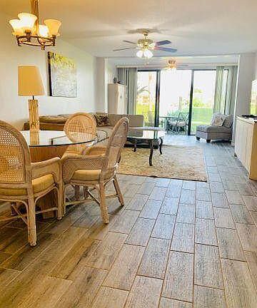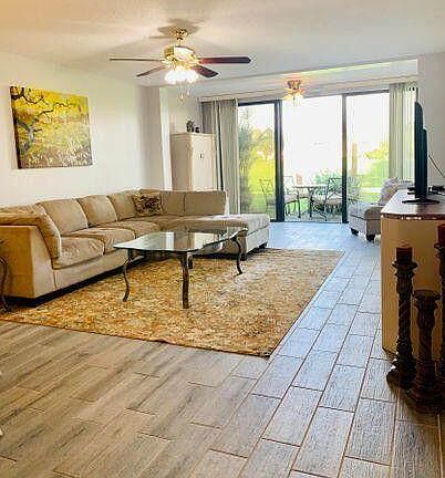 Furnished & oversized 1BR/1BA rental in the pristine 55+ Fountains community. Features tile flooring throughout, new A/C, and impact sliding door leading to a serene garden patio. Walk to the sparkling heated pool. No pets. Association requires 700+ credit score. Enjoy resort-style amenities, manned gated entry, and 24/7 security. Prime location near Florida Turnpike, I-95, golf courses, shopping centers, hospitals, and top dining. Perfect for seasonal or annual living in a highly desirable, well-maintained active adult community.