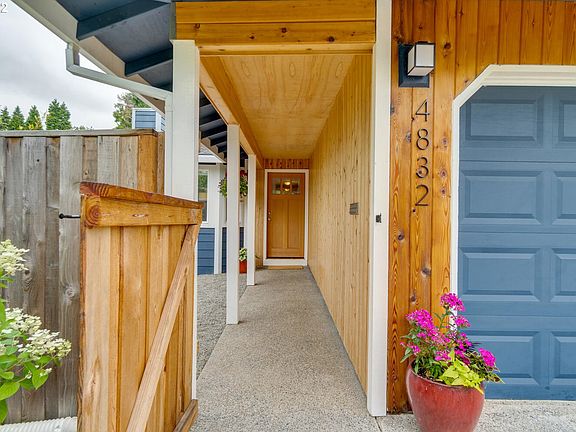 Convenient, comfortable West Cully ranch. Private courtyard enters light filled living space w/gas fireplace, vaulted ceilings & skylights. True 3-bdrm includes primary suite w/tiled walk-in shower. Dining area off modern kitchen w/new appliances, gas range, open shelving, quartz & butcher block counters. Covered patio & large, fenced backyard - ideal for gatherings & gardening. Attached 380 sf garage adds storage or flex space. Close to shops parks, trails, 42nd St. hotspots & Beaumont Village [Home Energy Score = 7. HES Report at https://rpt.greenbuildingregistry.com/hes/OR10203309]