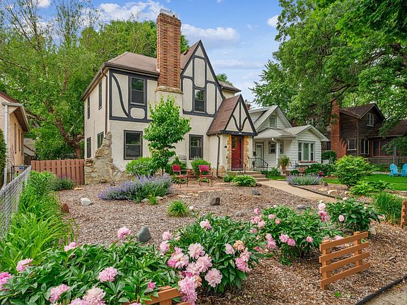 Welcome home to this classic South Minneapolis two-story Tudor, just one block from the scenic biking paths along Minnehaha Creek. Beautifully maintained and full of character, this home features a well-manicured front yard filled with perennials that create standout curb appeal. Inside, you'll find rich woodwork, hardwood floors, and a wood-burning fireplace that add to the home's old-world charm. The main level offers a spacious living room, a formal dining room, and an updated kitchen with ample storage, abundant sunlight, and views of the private backyard. Upstairs, the home features three generously sized bedrooms with large closets and a full bath. The basement includes a large family room with a second fireplace, a laundry area, and a mechanical room with plenty of additional storage. Step outside to a fully fenced backyard with a large patio - ideal for relaxing or entertaining. A detached two-car garage completes this fantastic home. All of this in a sought-after neighborhood close to local eateries, coffee shops, and parks - this is South Minneapolis living at its best.