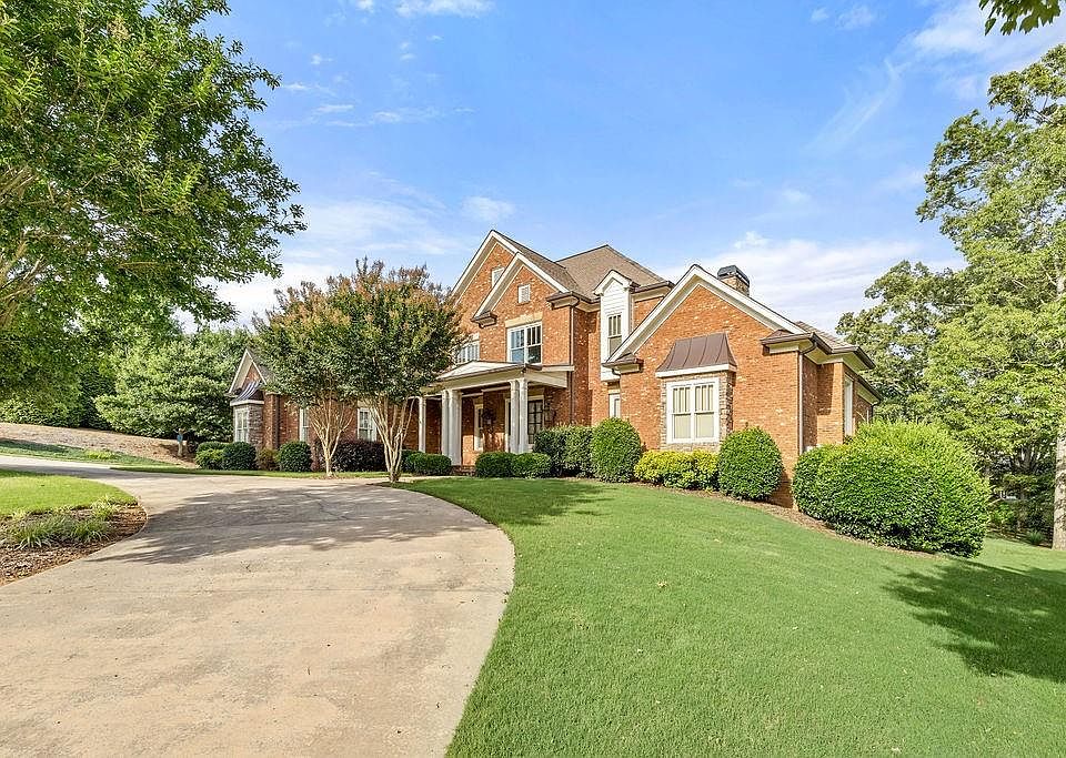 Introducing one of the most magnificent homes in northern Hall County. All brick southern traditional exterior. Very private cul-de-sac drive. Grand staircase meets you in the 2 story foyer. Luxury construction elements of built ins, gorgeous ceiling details, wood and stone floorings, amazing lighting, sunlit windows throughout, walk in closets and pantry. Three chimneys serve fireplaces in several gathering rooms and add beautiful architectural detailing. Big Lot. Triple garage. Several two story ceilinged rooms. Large owners suite includes living spaces and the owners bath includes a central magnificent shower. Full unfinished terrace level has many windows and daylight streaming through plus a boat door for extra storage. The home includes a covered terrace level patio, a covered main level entertaining patio with a fireplace centerpiece, a sun deck, a welcoming front porch and a side friend entrance.