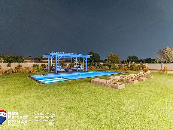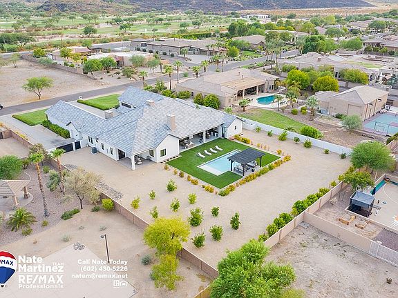 Experience pure refined luxury with this custom built 6,020 square foot 5 bedroom and 5.5 bath home situated on over an acre in the highly sought after Saddleback Meadows community. Every detail of this spectacular home has been carefully planned from the lush rolling lawns to the accent vegetation that greets you as you arrive. The exposed aggregate driveway leads to an auto court that features an 8 car garage (can fit 10 in tandem) with painted floor, insulated garage doors, electric car charging station, built in cabinets and large air conditioned walk in closet. Magnificent entrance is reminiscent of a top notch equestrian facility with stunning old carbonate brick detail in the courtyard where you will find terraced artificial turf set in pavers, a commanding gas fireplace and custom iron front door. Step inside and be awed by the clean elegant lines and large open living spaces. Great room features 15' tall ceilings with barn wood beam details, gorgeous Restoration Hardware chandelier as a stunning focal point, cozy brick gas fireplace with barn wood mantel surrounded by built in bookcases and a large slider pocket door overlooking the beautiful backyard living space. Your ultimate dream kitchen features two oversized islands, quartz countertops and backsplash, high end commercial grade stainless appliances, side by side 36" fridge and 36" freezer, Gas cooktop and oven, wine fridge, Beautiful Zinc kitchen hood, 2 built in cabinet hutches with glass doors, Farm style sink as well as a under mount sink, pot filler and a large walk in pantry. Elegant formal dining room has lovely wood work on walls, Restoration Hardware chandelier and French doors opening to the courtyard. The master bedroom is on trend gorgeous with custom wood work, Restoration hardware chandelier and silk window panels, relaxing sitting area with French doors leading to your own private patio retreat, Bar area with sink and bar fridge, his and hers vanities, makeup station with cabinet towers, large steamer shower with dual shower heads, rain head and body spray all enclosed in sparkling glass, freestanding gorgeous cast iron tub, large walk in master closet including a full sized washer and dryer. Secondary master features a stunning ensuite bath with large "wet room" with rain head shower and cast iron claw foot tub all behind glass ensure which is wheelchair accessible. Massive laundry room with subway tile wall treatments, penny tile flooring, gas washer and dryer, built in laundry hampers, laundry room walk in closet, large island for folding, built in cabinet dog kennel, doggie door leading to a fully enclosed dog run and laundry room farm sink. Other impressive amenities include 7 inch baseboards, real hardwood flooring, Sierra Pacific wood case window package, Restoration Hardware window treatments through out, on trend barn doors and shiplap detail on walls and ceilings. Exceptional outdoor living with a beautifully appointed patio space complete with an outdoor kitchen with quartz countertops, sink, bar fridge, built in BBQ grill and barn wood floating shelves. Cozy patio gas fireplace overlooks the serene heated rectangle pool with Baja step and a knife edge jacuzzi that blends in seamlessly to the landscaping and is framed by a one of a kind gazebo with 2 queen sized swinging beds. Numerous fruit trees adorn the large oversized lot with upgraded outdoor lighting from Restoration Hardware and extra security cameras for your protection. This is exceptional living at it's very best. Call Nate for a private viewing.