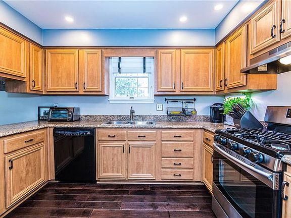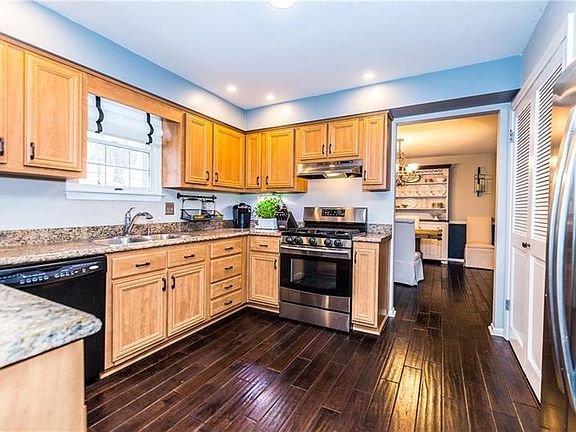 Private Wooded Setting. Well maintained four bedrooms home that sit back off the main road on 1.2 acres in desirable Bradford Woods. Spacious rooms have new Hand Scraped Oak Hardwood flooring on the entire first floor, steps and 2nd floor hallway. Family room boasts beamed vaulted ceiling with new skylight. Floor to ceiling brick fireplace with a wood burner. Glass sliding door to rear patio. Kitchen has updated appliances with plenty of cabinetry, a counter desk area and Breakfast Nook. Roof was new in 2016, Hot Water Tank 2018, High Efficiency Furnace with new motor and heat exchanger. 200 Amp service. A large portion of the property has been fenced for pets. So much more to see.