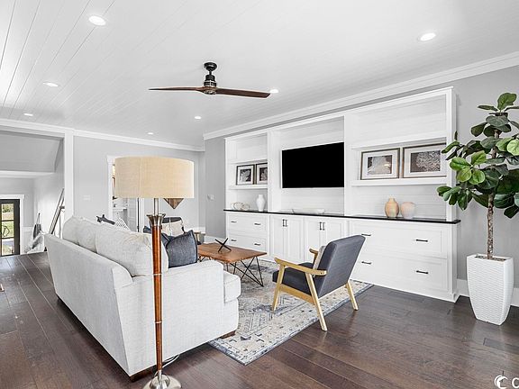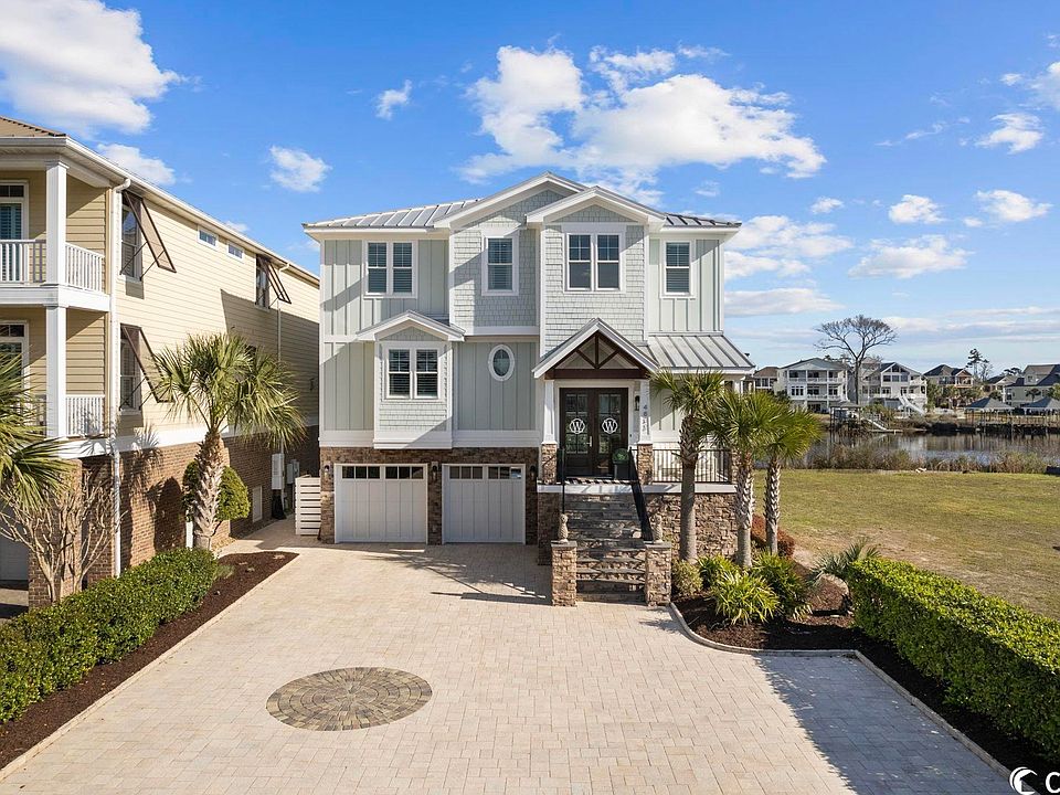 Amazing custom designed and constructed home with a direct Intracoastal Waterway location in Little River. Elevated details and finishes can be found throughout this property; this is not a typical builder grade home. Completely turn key in excellent condition, sold fully furnished with all appliances. Perfect for entertaining with outstanding water views and a phenomenal outdoor living area complete with outdoor kitchen, pool and tanning ledge. Raised construction and a classic coastal craftsman style, this home offers 4 bedrooms, 4.5 baths, two living areas and a flex/office space spread over 4,000 square feet. The main floor has a bright white kitchen with Statuario marble countertops, Kitchen Aid Professional appliances and a built in Miele coffee machine. Tongue and groove ceilings accent the kitchen and living areas for a true coastal feel. The living space opens onto an expansive covered balcony with dining and living areas to enjoy the water views. The primary suite is on the main floor with large en suite bath. A large laundry room with LG front load washer and dryer is also on the main floor. The home also features hand scraped Shaw hardwood flooring throughout in a charcoal ash color, craftsman trim package, board and batten paneling, plantation shutters, custom window treatments, Baldwin door hardware and Hinkley/Kichler lighting. The roof is standing seam metal for low maintenance. Windows and all sliders are all coastal impact glass by Viwinco. Upstairs, a large secondary living space with wet bar is accented by exposed truss ceiling accents. Three additional bedrooms and two baths allow for plenty of guest space. Another large balcony on the top floor gives you a birds eye view of the waterway. A small additional flex room can be used as an office or craft room. No expense was spared in the outdoor space of this property. An expansive outdoor kitchen features a smoker, large flat top grill for Hibachi, two burners, dishwasher, beverage fridge and plenty of drawer/cabinet space. Countertops are Fantasy Brown leathered granite and stacked stone accents the backsplash. The custom pool has a sizeable tanning ledge with Ledge Loungers and a beautiful blue plaster. The pool is heated and has mini LED pool lighting. Travertine tile coping and paver patio accent the space. A fixed pier and deck allow you to take advantage of the waterway lifestyle. A 12,000 lb High Tide boat lift with standing seam metal roof will protect your boat from the elements. A floating dock has been installed for easy docking. Built with composite deckboard and aluminum railing for low maintenance and care. LED lighting accents the deck post caps. The lawn has been fully hard scaped for low maintenance and no grass. All plantings are drought tolerant as well. The ground floor garage is spacious with over 1700 sf of space and includes a large pool bathroom with changing room and walk in tiled shower. A separate utility room has an extra washer and dryer. Floors have been epoxy coated for additional protection. The garage also has a hidden storage room that allows you to keep your items out of sight. Paradise Island is a small gated community in a prime Little River location. Just minutes to the oceanfront of Cherry Grove or minutes to the ocean by boat. Don't miss this unique property and schedule your showing today. All information is deemed reliable, buyer is responsible for all verification.
