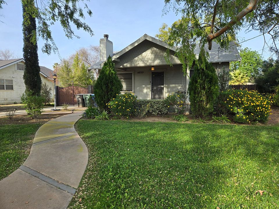 Charming cozy cottage in the heart of Riverside's Wood Streets Area. 2 bedroom 1 bath, hardwood floors, central AC and heat and original tiled fireplace. Upgraded kitchen with old world charm and modern amenities. Gas stove, dishwasher, microwave, quartz and tile counters and large stainless steel refrigerator included. Also features built-in seating for kitchen nook. Bathroom with soaker tub and period art deco decor makes this the perfect place to call home. Inside stackable washer and dryer. Fantastic front porch with swing for relaxing on those warm evenings to come! Beautiful tree lined streets, close to schools and shopping at the Riverside Plaza or downtown. No garage included but lots of off street parking and huge back yard area! Lawn service provided. Small pet OK.** *Renter's Insurance Required. Mission Property "We Care Where You Live" **Some breeds or mixes may be excluded due to insurance restrictions. Rules and policies pertaining to pets do not apply to service companion animals.