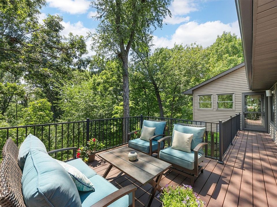 Spacious contemporary home with walkout lower level and a private, wooded backyard backing up to a nature preserve. The great room features soaring ceilings, hardwood floors, gas fireplace, built-ins, and a wall of windows offering stunning views. Updated kitchen includes new quartz countertops & sink (2025), stainless steel appliances, breakfast bar, and opens to a large dining area. Bonus room off dining (currently an office) has 9 windows & door to an upper (maintenance-free) deck. The large primary suite offers a walk-in closet with a new skylight, 2 additional closets, built-ins & deck access. Ensuite bath has a jetted tub, shower, dual sinks & granite countertops. Walkout lower level includes a rec room with a wet bar, fireplace, and walkout access to a peaceful screened porch. Two spacious bedrooms, full bath, billiards room & two storage rooms round out the lower level. Over $175K in updates including roof, siding, gutters, fencing, skylight, new furnace (2023), AC (2024), professional window treatments, security cameras, new digital irrigation panel, newer carpet, neutral paint & more. Oversized 3-stall garage with new motors & keypad. All kitchen appliances, washer/dryer + pool table included. Desirable neighborhood near Xavier, Cedar Rapids Prep & Kennedy High School.