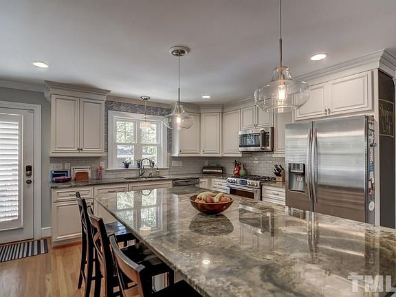 Quite possibly the best backyard in Raleigh! Completely renovated ALL BRICK ranch w/ full basement in highly desirable Brookhaven community. Nearly 1 acre lot. Spacious family room features masonry wood burning fp. Gourmet kitchen offers massive center island, high level granite tops, s/s appliances (gas range) & subway tile b-splash. Master includes updated bath w/ frameless tile shower, granite top dual vanity & WIC. Huge lower level family rm w/ wet bar & beer tap. Screen porch + oversized deck. Wow!