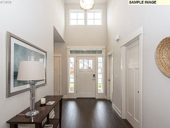 Dramatic vaulted ceilings with tall windows backing up to treed greenspace and walking trail. Vaulted Great Room open to kitchen with enormous island for the entertainer! Extensive Laminate Floors, tiled shower, soak tub and so much more! Luxurious living on one level plus daylight basement w/2 additional bedrooms and family room. Home is under construction. Move in this March!