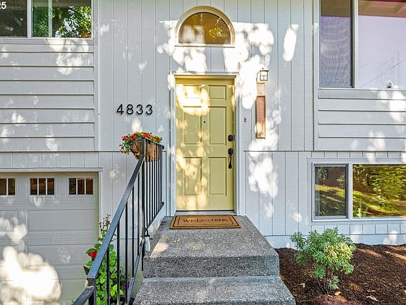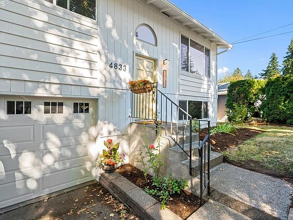Located in the close-in Southwest neighborhood of West Portland Park, you’ll love being near local parks, shops, quick I-5 access, transit access and close to PCC Sylvania. Inside you are greeted with an open floor plan and parquet wood floors. Main living area has lots of natural light from the new front window. Also a large dining room with a slider to spacious deck and an open kitchen with gas cooking. The remodeled primary/hall bath features an updated vanity with extra built-in storage and a nice subway tiled tub-shower. Downstairs has a huge bonus room with built in shelving. A great flex space for a family room, game room, 4th bedroom, office, you name it! The many recent updates make this move-in-ready! Those updates include—newer HVAC with central air (2020), updated vinyl windows, fresh paint inside and out, new carpet, and new garage doors (2025), Roof (2017). Outside has a spacious deck overlooking the fenced yard with a storage shed and mature plantings. Talk about storage... check out the huge oversized garage! Stylish, comfortable, and conveniently located, this home is ready to welcome its next owner. [Home Energy Score = 5. HES Report at https://rpt.greenbuildingregistry.com/hes/OR10241952]
