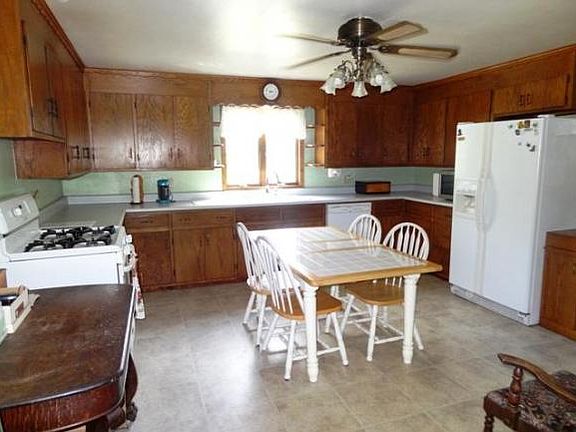 10+ acre farmette! Beautiful country setting. 4 bedroom home w/3+ car attached garage + outbuilding & older barn. Sun drenched living room. Huge eat-in applianced kitchen, newer spacious sun room, 1 main level bedroom, + 3 upper level bedrooms + 2 full main level baths. Updates include:sunroom & garage additions, siding, windows, water heater & new mound to be installed. Mature shade & fruit trees
