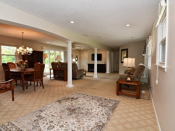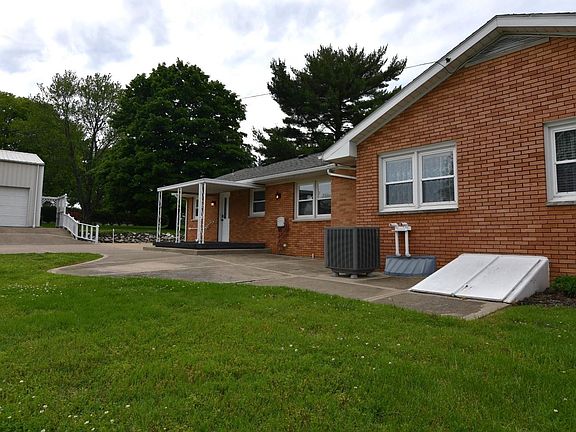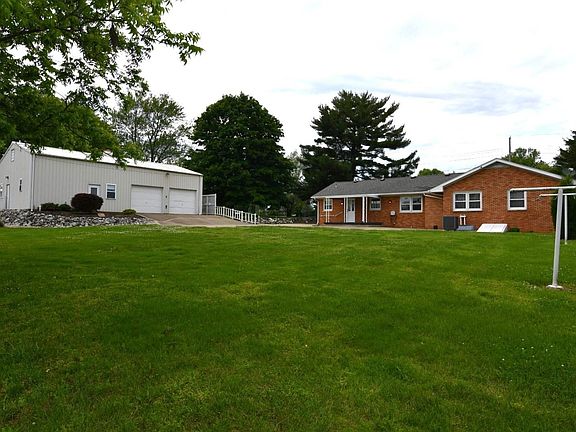 Brick 3 bedroom /2 bath ranch with full unfinished basement. Conveniently located on a 1.2 acre lot with a 33x48 pole barn (heated and cooled shop) with summer kitchen, full bathroom and walk up loft storage. Open floor plan home , bright and sunny rooms. Eat-in kitchen (gas range, refrigerator, microwave, dishwasher). Master bedroom with double closets and full bath. Hall bath features whirlpool tub, large vanity and linen closet. Formal dining area. Laundry located on main floor. Freshly painted. Neutral décor. Replacement windows. Enjoy a little country living. Garden spot, dog kennel, and a spot to dry your clothes outside. Loved and well cared for home just awaiting its new owners.