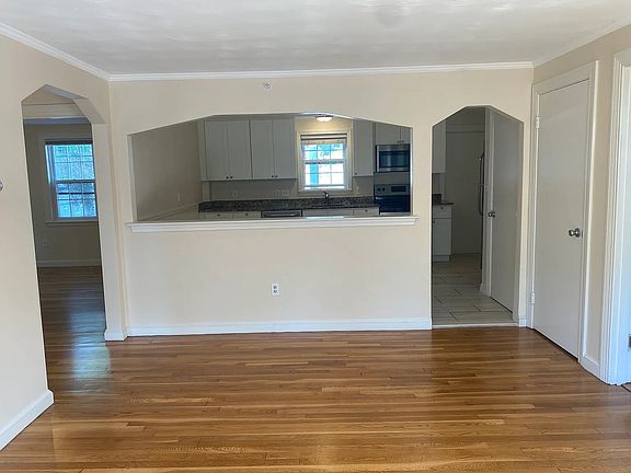 2 Bedroom beautifully renovated apartment with hardwood floors throughout. This modern large kitchen features gorgeous granite counters and new stainless steel appliances with lots of space for cooking and entertaining! Private deck off kitchen and off-street parking. Laundry in building. Excellent closet space! Convenient location close to public transportation, highways, Dedham Mall and Legacy Place. No smoking! On 2nd Floor. Laundry - Small Pets OK -