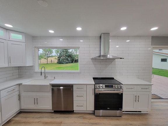 Come see this beautiful fully remodeled county home. So many brand new features like the new country-chic kitchen with brand new appliances, new carpet, paint and flooring throughout! New tile, flooring, vanities and light fixtures in all bathrooms. With 5 bedrooms (one non conforming), there is plenty of room for everyone! The 2 wood burning fireplaces add extra comfort and ambiance. The 11.76 acres is usable, premium farm land. Currently used for dryland farming of hay (easy harvesting with low weeds/rocks and even ground). 2 wells service the property (1 for the house and 1 for irrigation). Bring the horses or farm animals! Animal shelters already in place. Water spigots all over this property! One car garage is attached and 2 more additional parking spaces are detached. The white "church house" is all set with power and space to make it your own personal workshop, man cave, or art studio. The possibilities are endless! Mature apple, plum and nan king cherries. Come and see!
