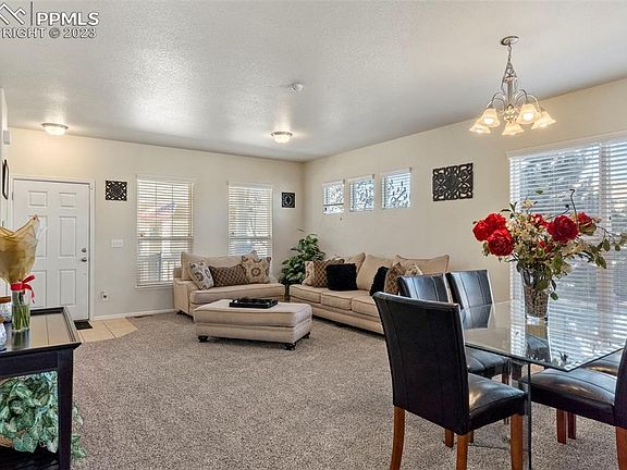 Take a private tour of this gorgeous 3 bedroom, 3 bathroom townhome in Colorado Springs! This home has great curb appeal and sits on the corner for added privacy and easier access. The exterior is warm and welcoming with an enclosed front patio. The second you walk into the home you see the sellers pride and joy as everything is well maintained with upgrades throughout the home. The living area is open and inviting and connects to the dining area. The kitchen features and includes all appliances, new vinyl flooring, tons of cabinet space, a breakfast bar/island, breakfast nook and opens to the family room, great for entertaining. The main level also includes a half bath and laundry facilities for added convenience. The kitchen also leads to the backyard which is fenced and private and also connects to the 2 car detached garage. The second level of the home features all 3 bedrooms and 2 additional bathrooms. The bedrooms are spacious and the primary bedroom is huge, with vaulted ceilings and has its very own private 5pc bath complete with double vanity, tub, shower and a walk-in closet. Additional upgrades include a newer water heater 2022, new carpet, new trim and vinyl in the kitchen, kitchen appliances 2018, and a new garbage disposal 2022. Make this home yours today! Schedule your private tour!