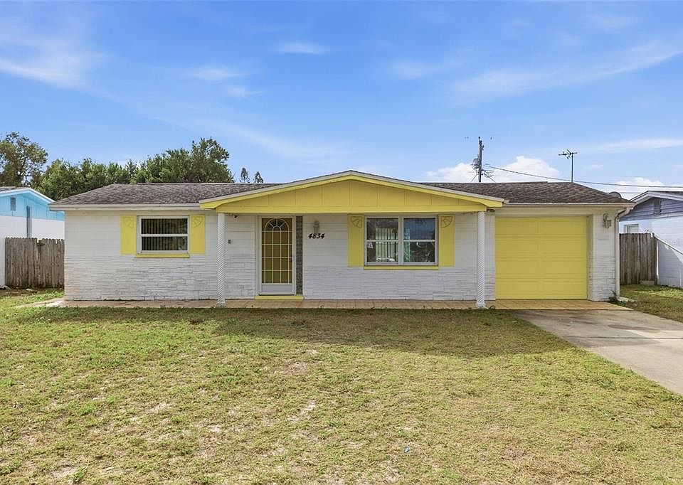 Welcome to this well-maintained single-family home located in the Orangewood Village community of Holiday, Florida. Situated in a non-flood zone and with no HOA, no deed restrictions, and no rental restrictions, this property provides exceptional flexibility for full-time living or investment opportunities. The home offers 1,004 square feet of comfortable living space with 2 bedrooms, 1 full bathroom, 1 half bathroom, a one-car garage, and a versatile bonus room ideal for a home office, guest space, or flex room. The kitchen features Kitchen Craft solid wood cabinetry paired with stainless steel appliances, combining durability with classic appeal. A significant recent upgrade includes a brand-new HVAC system installed in January 2026, featuring a 2.5-ton unit with a transferable warranty for the buyer. Outdoors, the property boasts a large enclosed yard with PVC fencing on all sides, offering privacy and ample space for outdoor enjoyment. The location is a standout. The home is just steps from the Anclote Coastal Trail, perfect for walking and biking. Anclote River Park is only a three-minute drive and offers a swimming beach, boat launch, designated fishing areas, and picnic pavilions. Howard Beach Park, a hidden gem, is just twenty minutes away. The Gulf, historic downtown New Port Richey, and the Tarpon Springs Sponge Docks are all within approximately ten minutes. Shopping, dining, and entertainment are nearby, with the expressway roughly twenty minutes away and Tampa International Airport approximately thirty minutes from the property. This home combines recent upgrades, flexible use options, and an outstanding location near some of the area’s most desirable coastal amenities, at an amazing price.