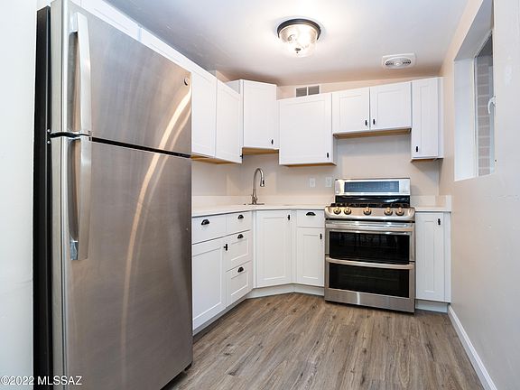 Charming red-brick classic home from the 1950's, freshly renovated with modern touches. Designer paint, new vinyl plank flooring, mid-century modern fixtures / vanity, new kitchen cabinetry with Quartz countertop, and stainless steel appliances, all make this a really lovely home. 3 bedroom*, 2 full bath, OR *bonus room that can be used as a Master Suite, Mother-In-Law Suite, or as it has been previously used, as a standalone apartment (with private bath/entry). The Myers neighborhood is located in central Tucson and just a hop, skip and jump from the beloved Reid Park and Zoo. You'll find ample yard space, plenty of sidewalks and love the grand pine in your own backyard. Agent is related to the Seller.