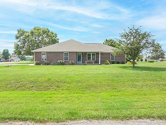 Remarkable, well kept, low maintenance... the list goes on. But it perfectly describes this brick and vinyl ranch on a large lot in the Meadows subdivision outside of Dale. This home is immaculately kept and it shows. You'll be greeted by the amazing front porch perfect for watching the day go by. Once inside, the living room features a vaulted ceiling with fan, and all the walls have been recently repainted neutral coastal colors. Off to the right is a handy mechanical/storage closet and a coat closet. Down the hall is the two guest bedrooms and a full bathroom. The two car garage is off of the living room and has a pull-down attic for storage. Into the kitchen you'll see the new stainless steel appliances and attached laundry room. The primary bedroom is off of the dining area and is large with two closets, a big picture window overlooking the pool, and en-suite. There is a flex room on the back of the house that is currently being utilized as a larger dining space. The backyard is nicely landscaped and features an amazing fiberglass pool, and there is still enough summer time to buy and enjoy it! The backyard has a vinyl privacy fence and beyond there is plenty more yard space and a yard barn for mowers, etc. Updates include: Appliances (Jan. 2020), HVAC (Jun 2020), Grinder pump (May 2020), Water heater (Jun 2020), New fabric & ropes for pool cover (Jul 2021), Shed (Nov 2021).