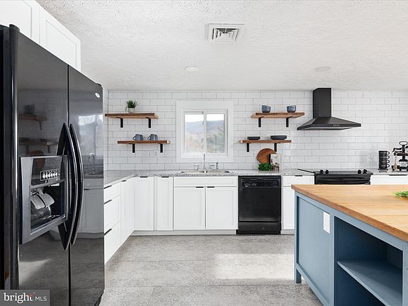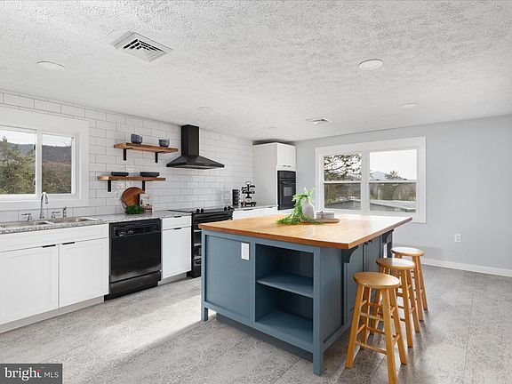 Charming ranch-style home featuring a spacious, unfinished basement with potential for additional rooms. The kitchen boasts an island with cabinetry, white soft close cabinets, granite countertops, a luxury range hood, tile backsplash, charming shelves, and sleek black appliances. A sliding window sits above the kitchen sink for you to enjoy the breathtaking mountain views, and beautiful hardwood floors run throughout the majority of the home. The cozy living room has a wood-burning fireplace with a mantel and hearth. This home includes 3 bedrooms and 2 full bathrooms, both with tiled tub/shower combos and tiled floors. The exterior features HardiePlank siding with cedar shake, board and batten shutters, and a stone front for added curb appeal. Schedule your own private viewing on this amazing property that sits on .88 acres!