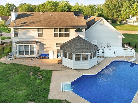 Fantastic 4bd, 3.5 ba 2-story w/ 3car garage, .39 acre lot, 40X16 inground pool w/ diving board in highly desired Highlands subdivision & Francis Howell schools! Beautiful façade w/ full brick, gorgeous bed of perennials, upgraded garage & front doors. Luxury vinyl plank on ea level. Spacious floorplan offers living room, family room, powder room, kitchen, breakfast room, dining room & laundry all on ML. Kitchen houses walk-in pantry, granite counters, overhang on the island for extra seating & counterspace + pendant lights. Family room offers lots of natural light from bay window + WB FP. Have a beverage or read a book in light & bright sunroom, enjoy the large deck, or dive into your own private pool. Master bd provides TONS of storage in WIC. Separate whirlpool tub and shower + dual vanities in master ba. 3 addl nice-sized bedrooms complete the UL. Partially finished basement has HUGE rec room & full ba w/ plenty of space yet to finish. 1-yr home warranty included. Additional Rooms: Sun Room