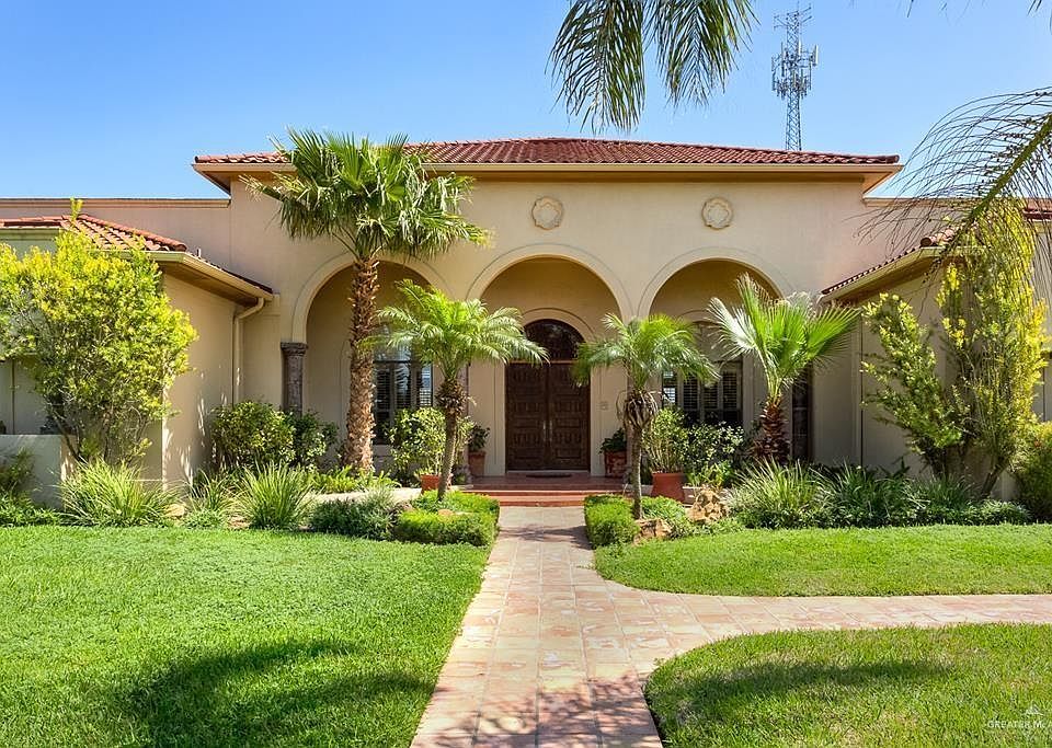 Grand Mediterranean Estate! Lake-front entryway on 1.5 acres with Stucco Exterior walls & "Terra-Cotta" metal roof with High-Ceilings and archway window and doors. On Bryan Rd sits the 5200+ (HCAD) square feet home with Four Bedrooms, Study, Four Bathrooms, and Three Car Garage. From the double front door, you will this the massive Formal Living and Dining Galley with 20' soaring ceiling, Triple Archways and Crown-molding with custom crafted in Ash woodwork, and Plantation Shutters though out the home. Modern Kitchen with Granite Counter-Tops, Massive Pantry, and Stainless-Steal Appliances. The Master Suite includes sitting area, outside access, Huge Travertine Shower plus Jettied Tub. Listed for $750,000. SEE THE VIDEO -- YouTube: 4834 N Bryan Road, Mission, TX