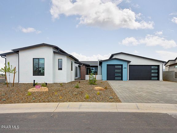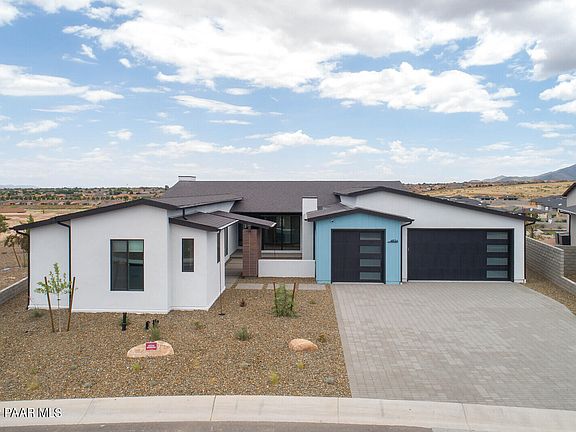 The prestigious clean energy community of Jasper in Prescott Valley. 4-bedroom, 3.5-bathroom 3-car garage home with every upgrade you can think of. Walk through the beautiful front courtyard skillfully designed with pavers and fireplace.features include gourmet kitchen with Extended Kitchen Cabinets, subzero refrigerator/freezer and Wolf appliances, granite counters throughout and a Butcher block island. Hunter Douglas glass blinds. The master bathroom boasts a double vanity with separate Makeup Vanity, Step-In Shower and walk-in custom closet. The 2nd master has a beautiful bathroom and large bedroom area. This is a true split floorplan. Expansive Outdoor Entertaining Space, covered patio and with fireplace and Million-dollar views.Owned solar panels. Vivant security system and cameras.