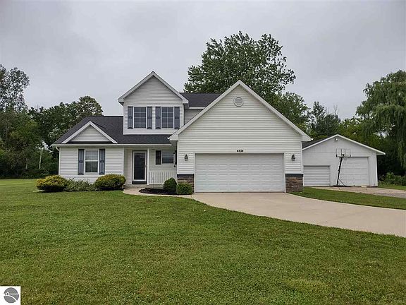 This beautiful, contemporary home sets the tone for comfort, convenience, and space! Sitting on an acre, the home offers four bedrooms, 2.5 baths, and room to spread out! Start out with the awesome kitchen that offers a full array of appliances, plenty of counter space, cabinets, a pantry for unexposed storage space, bar seating, and all while overlooking the dining area and large living room! The master suite has a private bathroom with tile floors, a massive walk-in closet, additional linen closet, along with a door wall leading outside to a private, expansive composite deck that goes the width of the house overlooking the back yard! Also on the main level is the foyer front entrance area with coat closet, laundry room, and a 1/2 bathroom. Upstairs there are three bedrooms and a full bath! In the basement there is a large finished family room area for extra living space and a partitioned rooms for storage and mechanicals. For more storage there is a 2 car attached garage and a detached block 25x28 building. Other features include natural gas, central air, concrete and gravel driveway, landscaped grounds, spacious backyard, new culvert, and both city water and sanitary sewer! Conveniently located by US-10, Midland, Freeland, Bay City, etc.