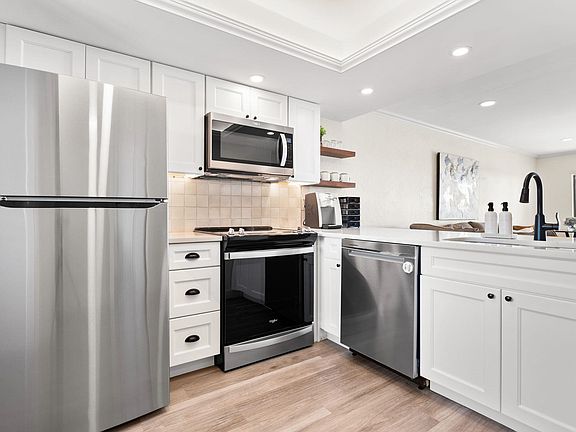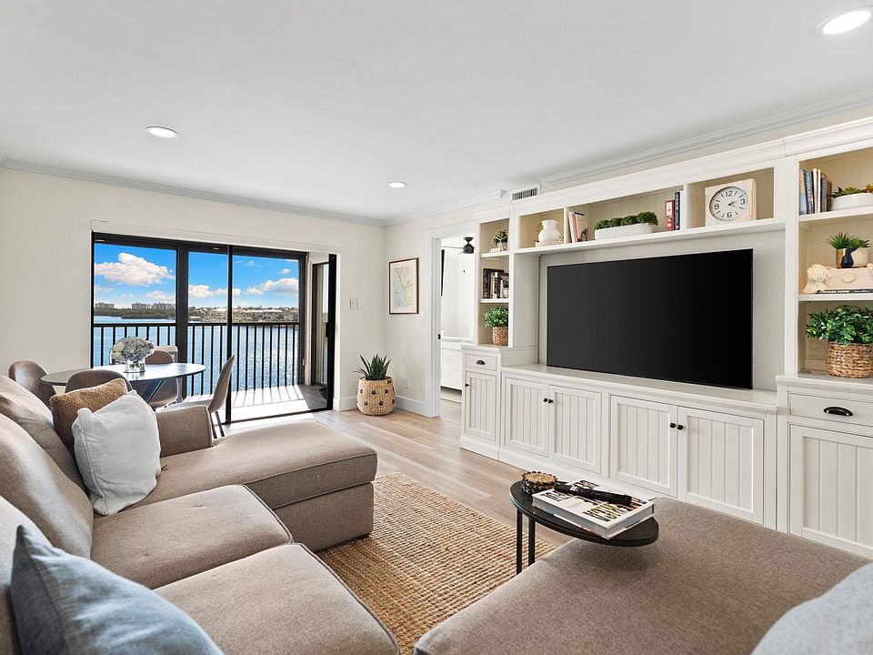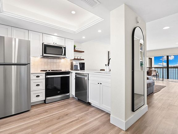 Welcome to Little Hickory Bay, where coastal living meets modern luxury at 4835 Bonita Beach Road #409. Completely renovated in 2022, this beautifully appointed 2-bedroom, 2-bath condo features soothing tones, clean lines, and upscale finishes throughout the unit. The open kitchen offers stainless steel appliances, quartz countertops, floating shelves, sleek cabinetry, and is seamlessly connected to the living and dining areas for easy entertaining. The private lanai offers a stunning 4th-floor Bay view framed by impact-resistant glass, offering both beauty and security. Other features include crown molding, recessed lighting, a wine cooler, closet systems in both bedrooms, electronic window blinds, shaker doors, and electronic metal shutters. Every detail has been thoughtfully updated—from the contemporary bathrooms to the vinyl flooring and elegant furnishings that perfectly complement the relaxed beach aesthetic. Just a short stroll to Bonita Beach, this property blends style, comfort, and convenience, with resort-style amenities including a waterfront pool, boat docks, kayak launch, pickleball and tennis courts, and a fishing pier. Whether you’re looking for a year-round residence or a turnkey vacation retreat, this upgraded coastal gem captures the best of Southwest Florida living.