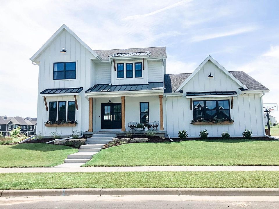 Modern farmhouse in Bishops Bay! Light filled open concept kitchen straight out of a magazine. Quartz counters, open shelving, custom cabinetry, coffee station & stainless appliances. Vaulted ceiling in dining room with expansive views. Gas fireplace has solid stone surround. First floor office & mud room w/laundry. Beautiful owners suite upstairs. En-suite includes double vanity w/quartz counter, large custom tile shower & soaking tub, custom closet. 2 other bedrooms offer generous closets & shared bathroom. Lower level boasts plenty of room for entertaining, spacious rec room, private guest suite, full bathroom, fitness room & storage. Anderson windows. One of the larger lots in the back nine with open space & trails around. Custom paver patio, firepit & garden!