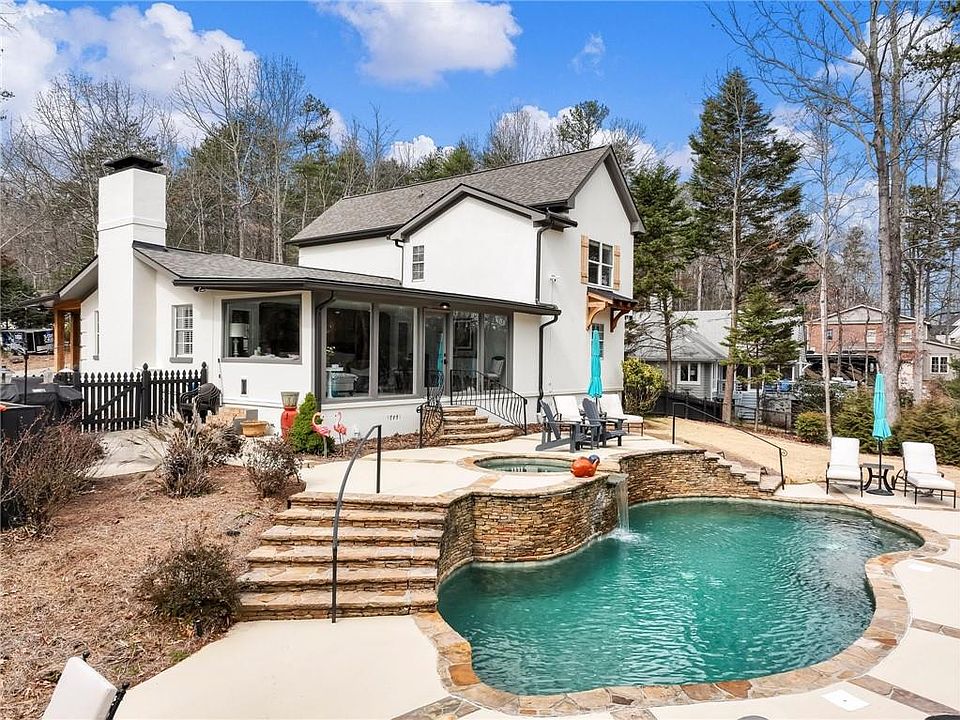READY FOR A PEACEFUL LAKE LIFE? Nestled on the tranquil shores of Lake Lanier, this beautiful gated 4-bedroom, 3-bathroom home epitomizes lakeside living at its finest on a double lot that offers privacy with the soothing sounds of nature. Meticulously renovated, this residence seamlessly blends modern elegance with the charm of waterfront living. As you step into the foyer, be greeted by the warmth of natural light from the wall of windows in the sunroom. The open-concept living spaces effortlessly flow, with kitchen, fireside family room and dining area. It creates an inviting atmosphere for both relaxation and entertainment all while enjoying a gorgeous view of the heated pool and pristine lake just beyond. Easy walk to the lake with New 32x32 double slip party deck. Home has new roof, all new bathrooms, new floors, new inside stairs, new laundry room, new inside doors, painted, new front door, added cedar accents outside, all new light fixtures, security cameras that provide an entire 360 degree views around the home, plus so much more. Every moment in this turn key home is an embrace of lakeside serenity. Please schedule a showing today! Professional photos coming soon.