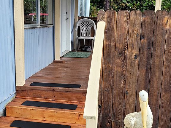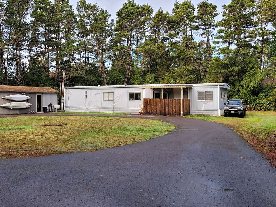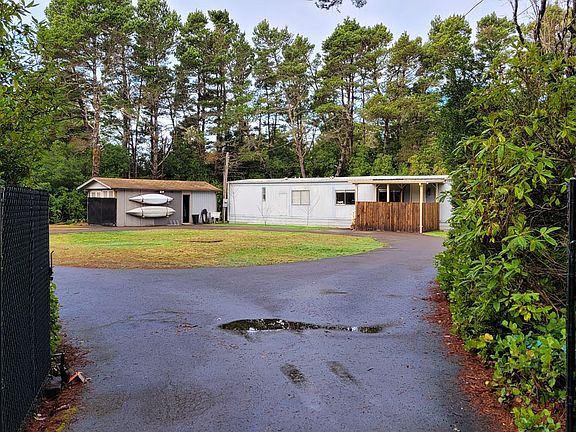 Fully Furnished Beach Area Sunny/Secluded .65 Acre parcel & 1976 3 bed, 1.1 bath 924 sq ft updated mobile home with new blinds and fresh interior paint. This potential VRBO is surrounded in Coastal Vegetation w circular paved drive, storage/work shop and easy walk to North Jetty Beach access or Driftwood Shores. Let the sound of the ocean & bouys ease your stress. Room for RV & toys plus there are NO HOA fees! Enjoy as is or build a custom home in the future. Carpet credit of $2,000.00.