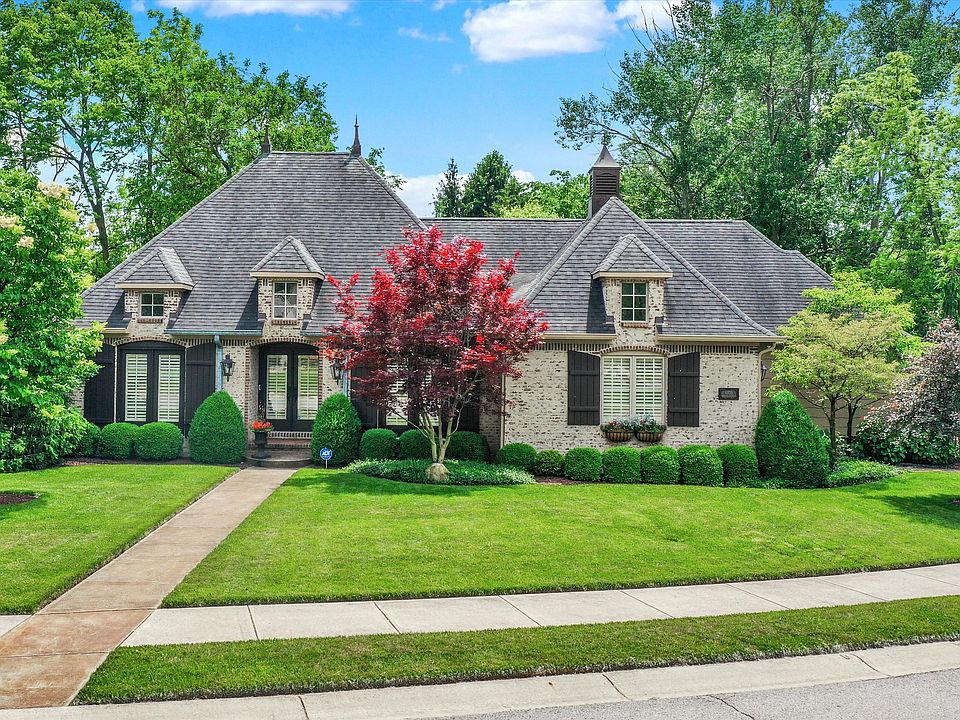 Rare opportunity in desired Morgans Creek! This Chateau Style custom built home offers a very open floorplan on main level with a spectacular view of the veranda. Harwood flooring throughout most of main level. Tray ceilings and custom moldings / woodwork throughout. French doors lead in to the main level primary bedroom that connects direct to screened in porch. Master Bath offers walk in tiled shower and double sinks. Amazing gourmet kitchen with large granite center island, stainless steel appliances, and a wine cooler. Finished basement with bedroom, full bathroom, and plenty of storage. Recent updates/improvements include full home generator, tankless water heater, furnace and dishwasher. Other features include custom built shelving in the study, plantation shutters, sounds system throughout, ventless fireplace in great room, irrigation system, and security system. You will not find a more peaceful back yard setting! The custom built water features and landscaping must be seen to truly appreciate. Very convenient Carmel location close to schools, shopping, and dining. Hurry, this will not last!
