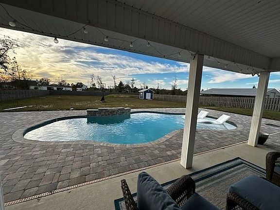 OFFER: $500 OFF 1st month's rent if you sign by 1 April 2025 LONG-TERM LEASE AVAILABLE, IF REQUESTED Close to everything, this 3 bedroom, 2 bath home on nearly an acre is practically brand new! Lounge in your private oasis with a heated and cooled pool, complete with a tanning ledge, 8ft deep end and tranquil waterfall (all patio/pool furniture is remaining for private use). The HVAC system, ductwork, metal roof, spray foam insulation, cabinets, countertops, ceramic tile floors throughout, high efficiency water softener, security cameras, lighting and fencing are all less than 2 years old! The chefs kitchen boasts stainless steel appliances, roomy pantry, double ovens, custom vent hood, farm sink and wine fridge. For work or pleasure, there is a custom built desk and shelving remaining with the home. Laundry room is equipped with washer and dryer, folding area and chute access to master walk-in closet. The backyard is HUGE, fully fenced, with shed and has space for boats, RV's and more! 2 car attached garage with epoxy floor. OWNER COVERS WEEKLY POOL MAINTENANCE. RENTER IS RESPONSIBLE FOR ALL OTHER UTILITIES. SECURITY DEPOSIT DUE AT SIGNING. ABSOLUTELY NO SMOKING/VAPING ALLOWED.