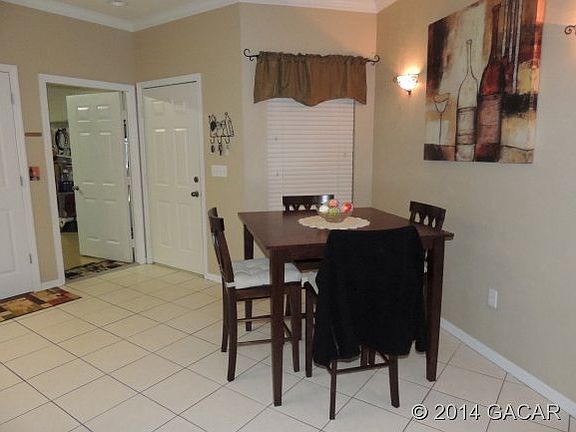 The Gardens at Blues Creek. Maintenance free living! HOA takes care of the exterior of the home and the yard. Open kitchen designed to entertain with adjacent dining area. Huge owner's suite with walk-in closet. On-suite bath has double sinks and shower (no tub). Two guest rooms and guest bath (with tub) plus inside laundry room. Nice screened porch in the back for relaxing. 2 car garage. Check out the clubhouse, pool, and tennis courts. Schools are Talbot elementary, Fort Clarke Middle, Gainesville High School. Hablo EspaÃf±ol.