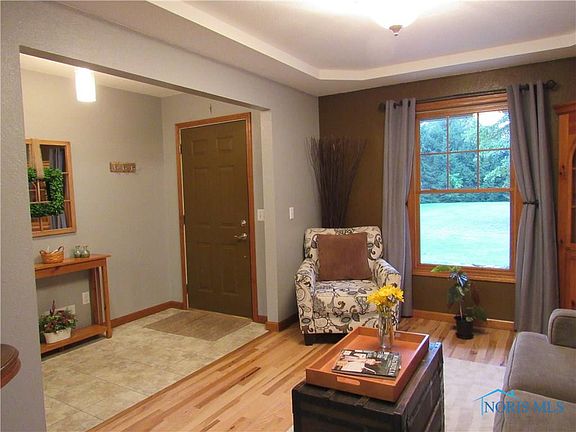 Ranch on 6+ acres including some woods. Hickory flooring thru out, hickory cabinets and trim. Additional area for guests or a 4th bed. Has full bath (with laundry) and kitchenette. 24x32 garage with 12x20 lean to addition, 28x36 pole barn with horse stalls. Beautiful hunting woods, pastures and room for garden, if wanted. Original owners have kept this immaculate.
