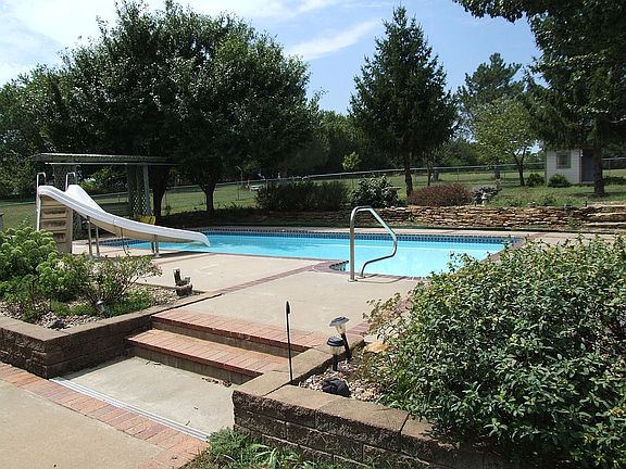 Custom built Walk out Ranch on 4.25 Acres. 2x6 construction, Custom Wood Cabinets w/ Granite Island & Corian Countertops, all new appliances, oak hardwood floors, Pella & Anderson doors & windows, Pellet Insert, Roof '07, His/Her Closet in mstr, 2 bsmnt staircases, mother-in-laws quarters & fam rm. 2 FP's, workshop, 30x30, Triple+dbl+single garages, heated, Ingrd Sports Pool 14x30, 50' waterfall w/2 KOI ponds, 3 season sunroom w/stamped concrete. Enjoy your afternoons & evenings in this outdoor paradise.